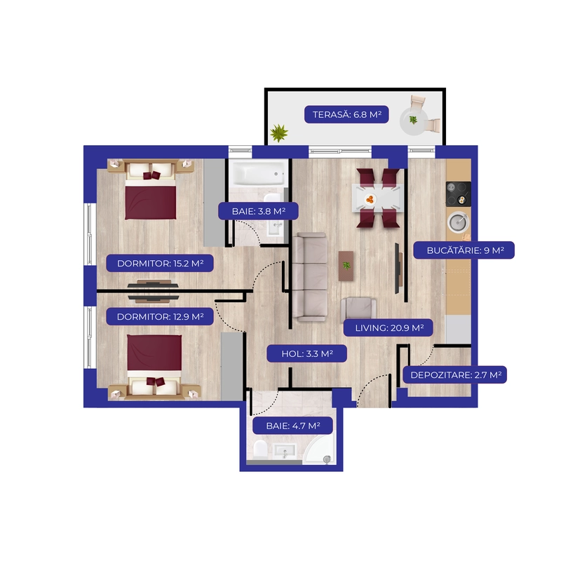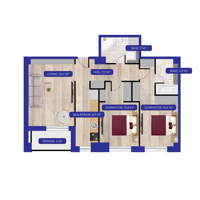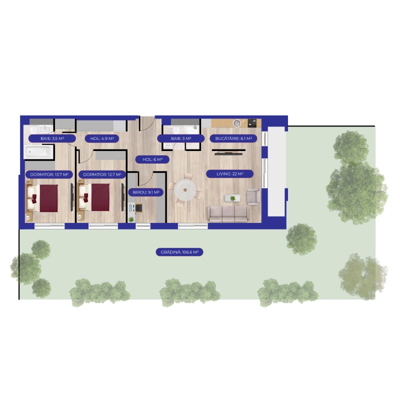 Maximizarea spațiului disponibil, cu scopul de a oferi intimitate și confort tuturor membrilor familiei.
